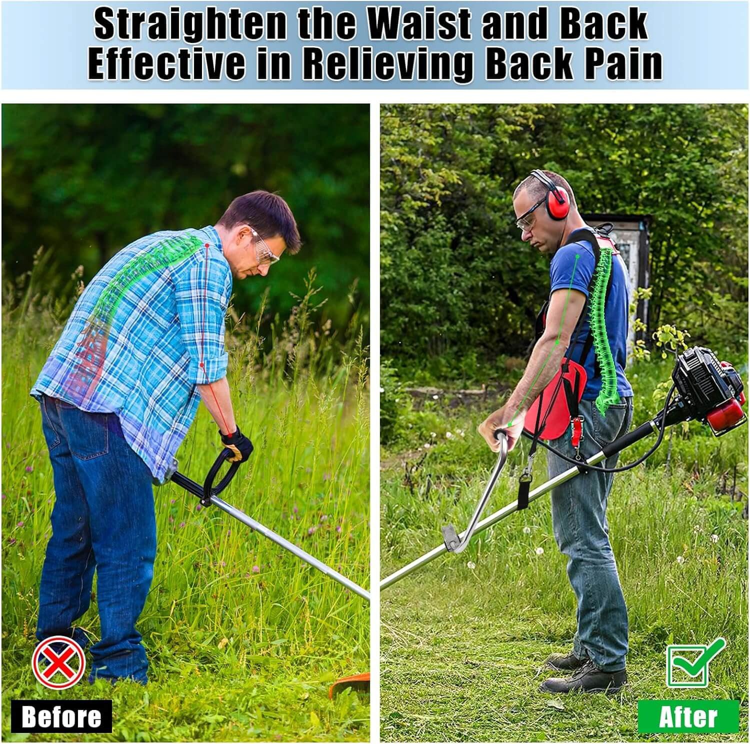 By ensuring an ergonomic position, promote better posture and reduce strain on the back muscles. You can minimize back pain and fatigue, allowing for more comfortable and efficient operation of the weed eater.
